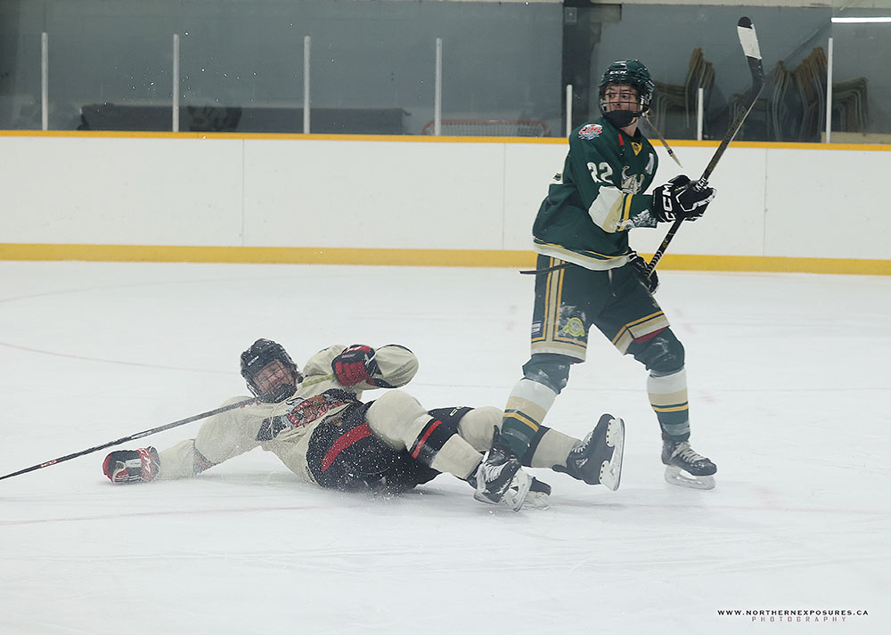 Brendan Cooke got the initial Beavers’ tally at 17:59 as he found himself free in the slot, and after taking a Jack Robinson pass, snapped it by the pad of Elliot Lake netminder Matthew Vahramian.