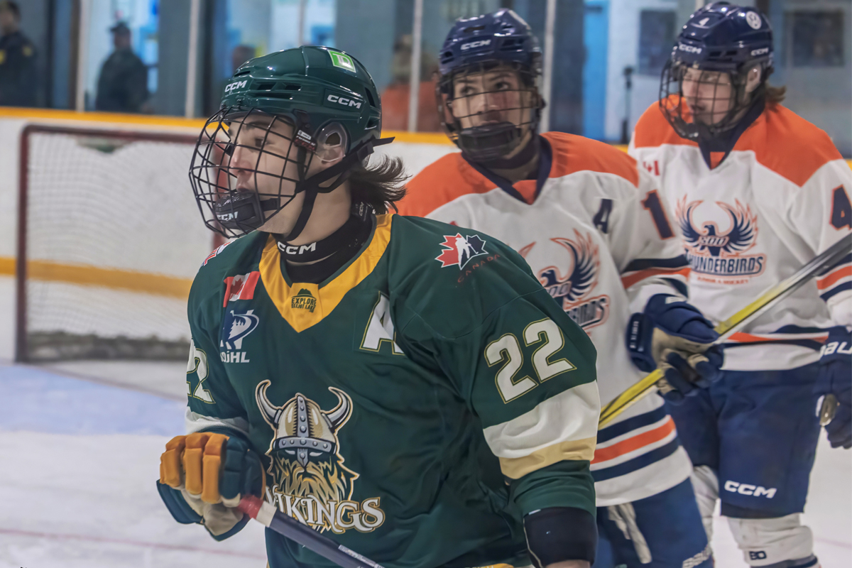A third consecutive tally by the Vikings, early in the final stanza, made it 3-2 as Ivan Kedrov darted into the T-Birds end and wired one over the shoulder of Mellenthin at 1:27.