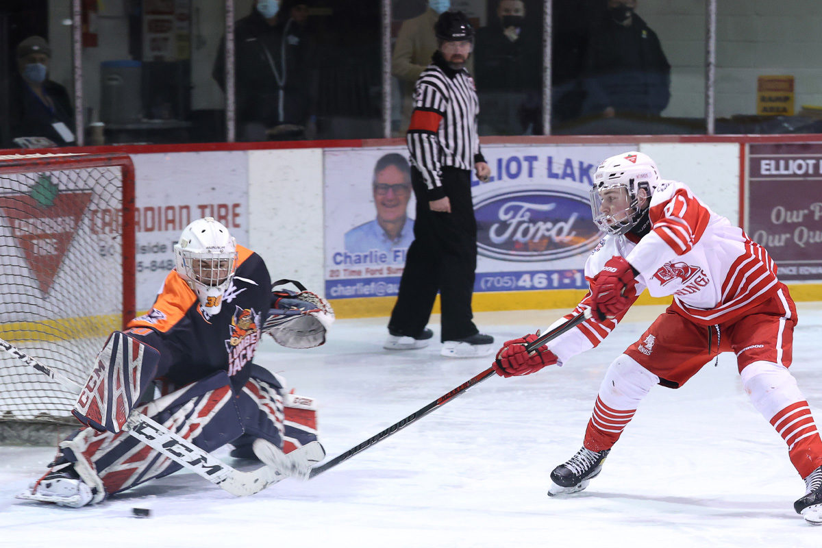 Getting one back on the next shift, Elliot Lake’s Giovani Moses had a number of quality chances from close range before eventually stuffing in his 10 goal of the season, in beating Hearst netminder Matteo Gennaro.