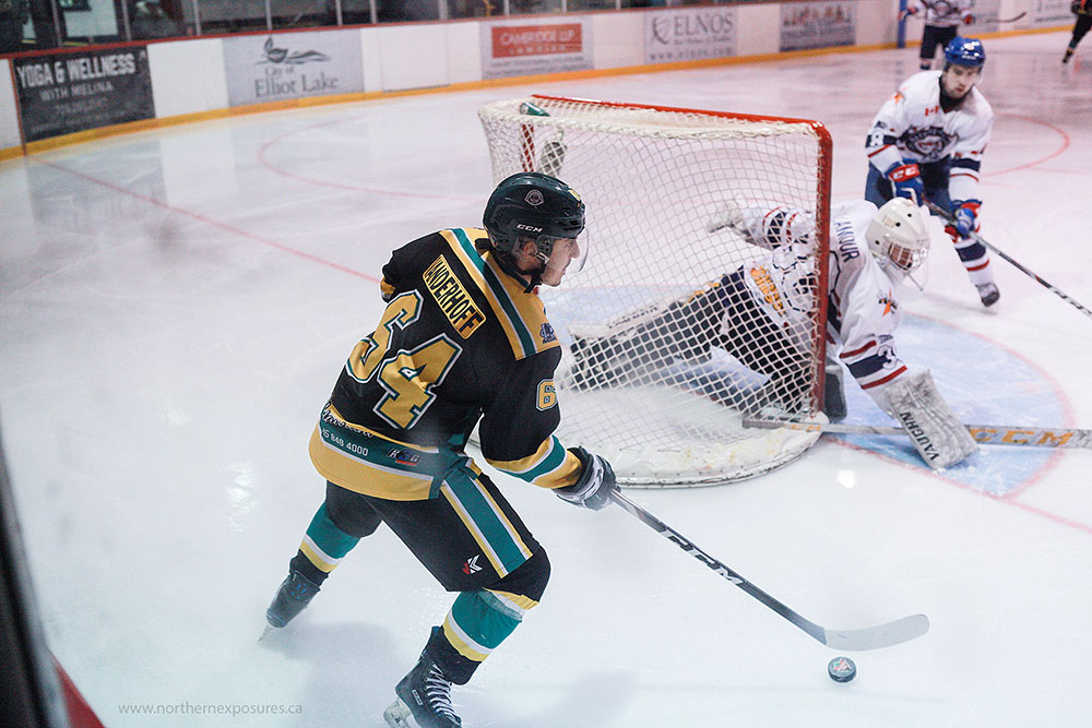 ELLIOT LAKE, Ont. – The Elliot Lake Wildcats stormed out to a three-goal first period lead before the Rayside-Balfour Canadians roared back by scoring four times in the final 13 minutes of regulation to pull out a dramatic 5-4 come from behind victory in Northern Ontario Junior Hockey League play Friday at Centennial Arena.