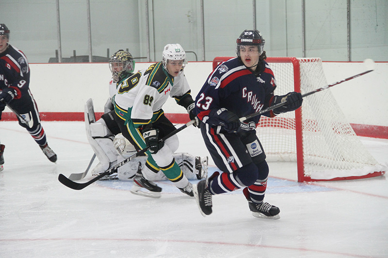 SAULT STE. MARIE, Mich. – Matthew Minichiello had a pair of goals, including picking up the game-winner with under seven minutes to play, as the Cochrane Crunch held off the Elliot Lake Wildcats by a 3-2 score in the final game of Day 1 at the Northern Ontario Junior Hockey League Showcase at Big Bear Arena.