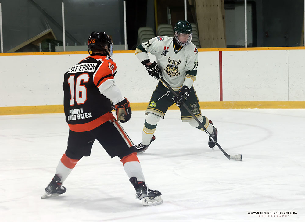 A turnover deep in the Elliot Lake end helped Hearst get on the board at 8:51 with Damien Bourdon-Lemoyne scoring from the slot on Vikings netminder Braydon Garnhart.