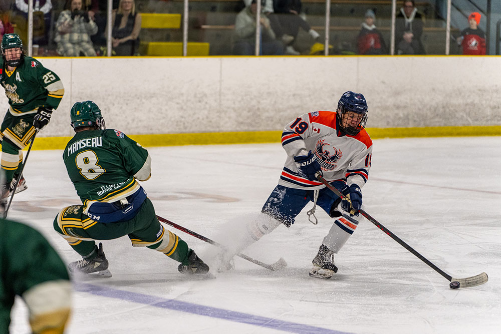 Ouellet completed his natural hat trick at 12:48 which made it 4-1 for the Thunderbirds.