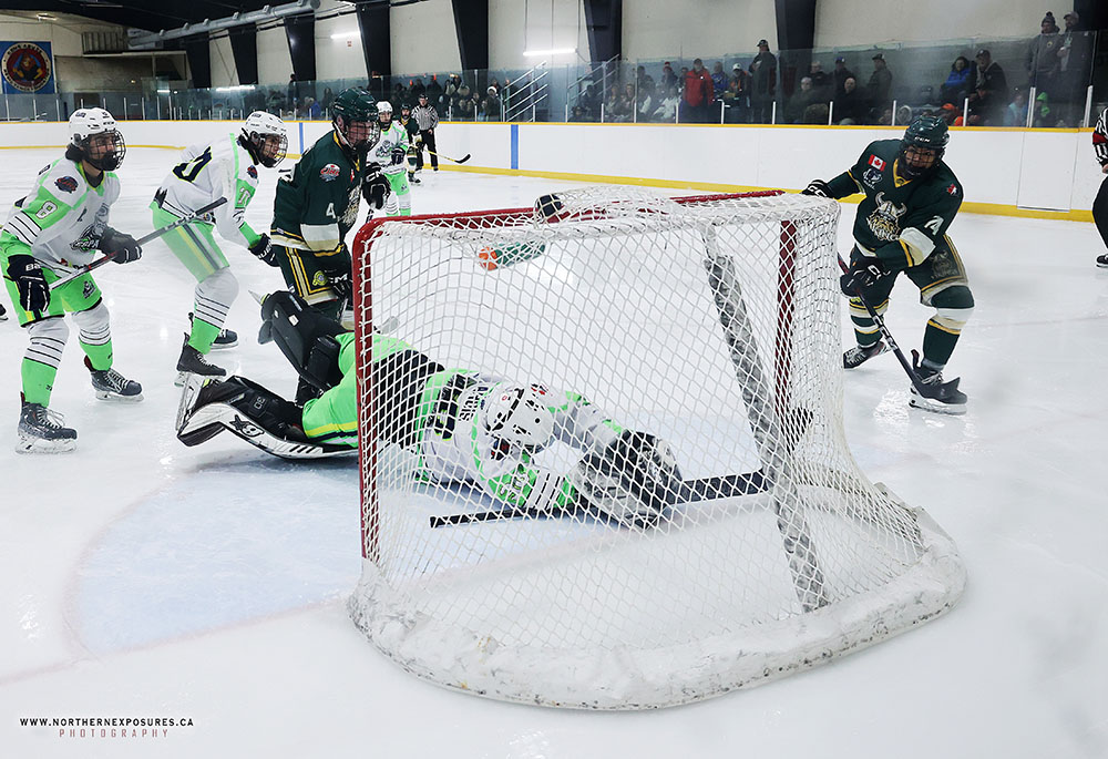 A fourth man advantage effort saw Espanola score once more as Fergusson buried a loose puck from in close midway the period.