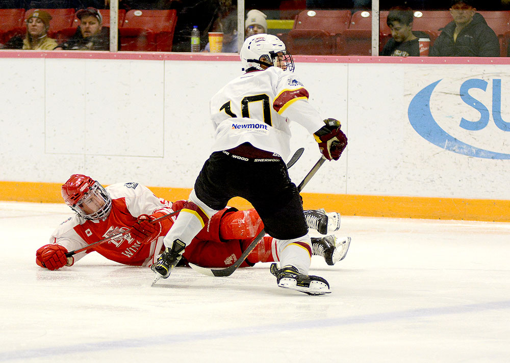 Building on that, the hosts went in front for good when Christophe Petit snapped one into an empty net from the right point after Red Wings’ goalkeeper Cameron Smith lost an edge and slid clear while looking to get across his crease, which prevented him from having a chance to make a save.