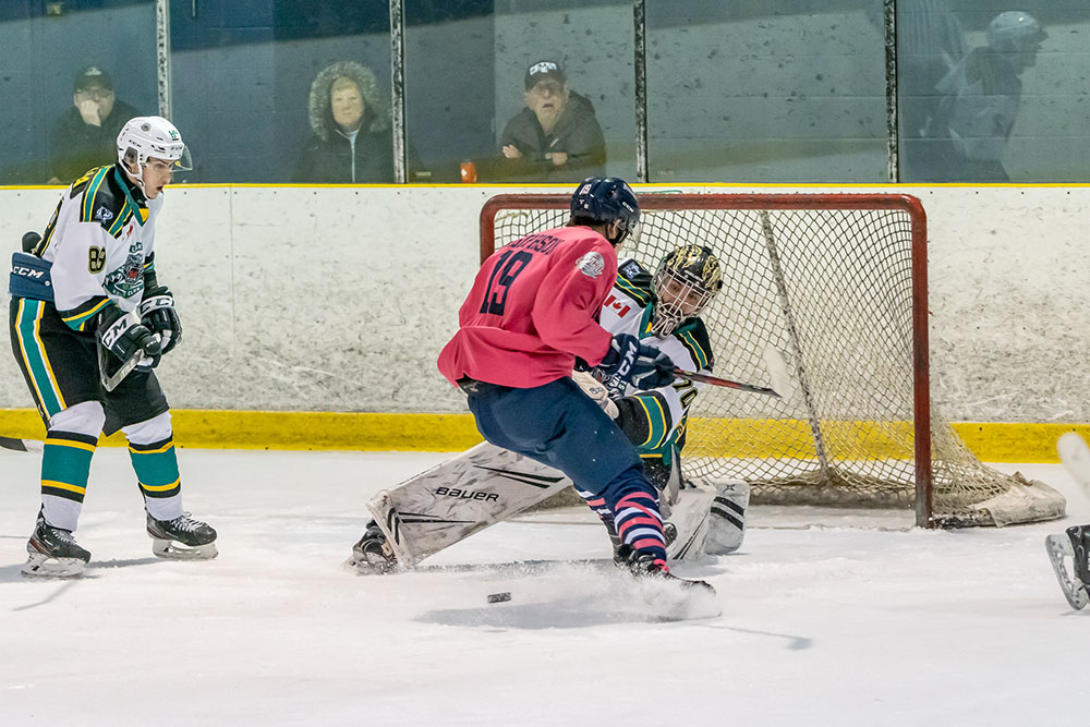 Shots on net on the night saw the Thunderbirds hold a big 63-29 edge with Colin Ahern picking up the win while Parker Simpson suffered the defeat.