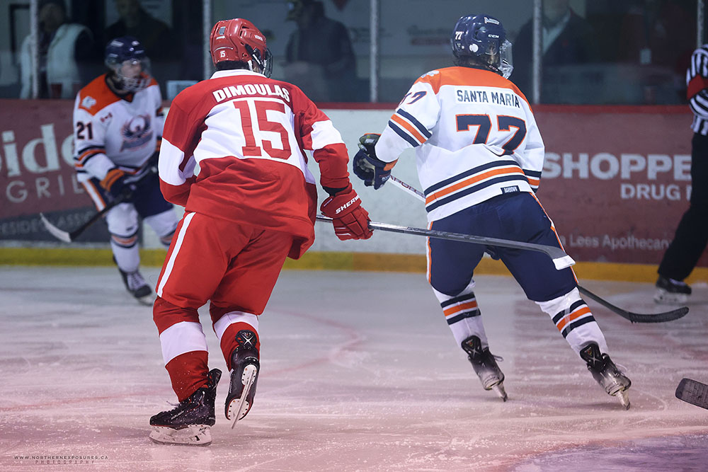 ELLIOT LAKE, Ont. – An early second period marker from Youssef Chaouachi held up as the game-winner as the Soo Thunderbirds went on to double-up the Elliot Lake Red Wings 4-2 in Northern Ontario Junior Hockey League action Friday at Centennial Arena.