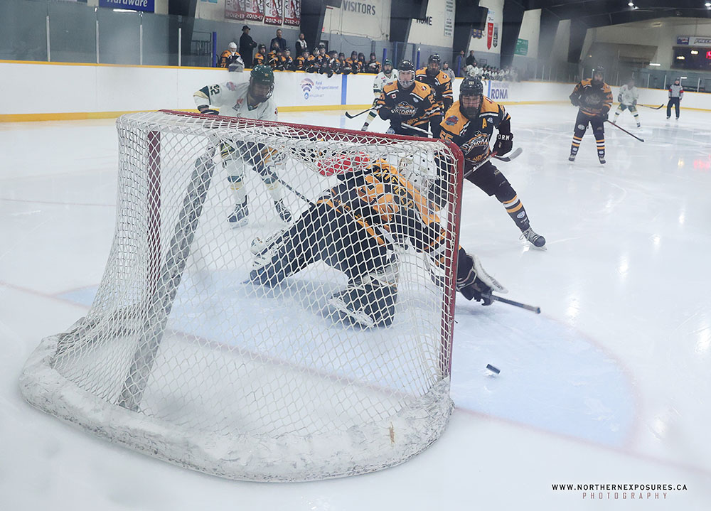 MASSEY, ON – The Iroquois Falls Storm scored three unanswered goals in the third period as they went on to a 5-2 win over the Elliot Lake Vikings at the Massey and District Arena on Sunday afternoon.