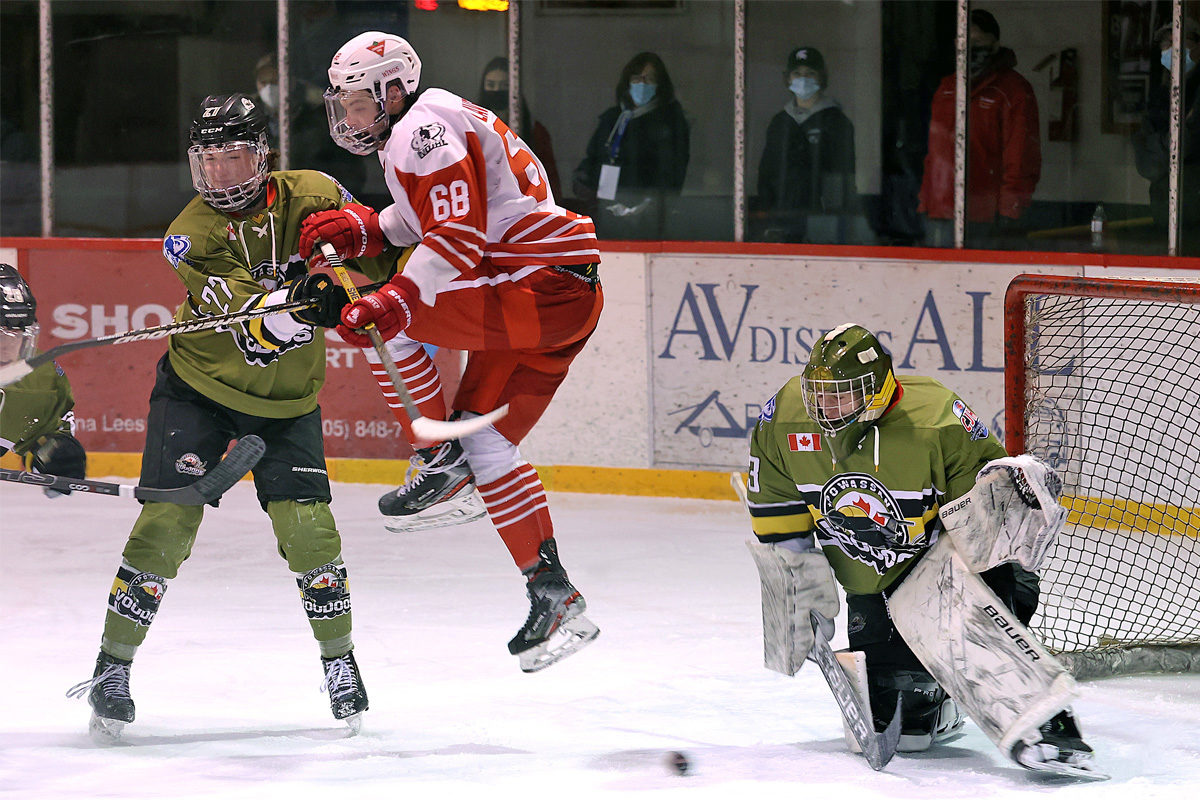 ELLIOT LAKE, Ont. – Skating out to a strong start, the Powassan Voodoos went on to defeat the Elliot Lake Red Wings 4-1 Sunday afternoon in a Northern Ontario Junior Hockey League match-up at Centennial Arena.